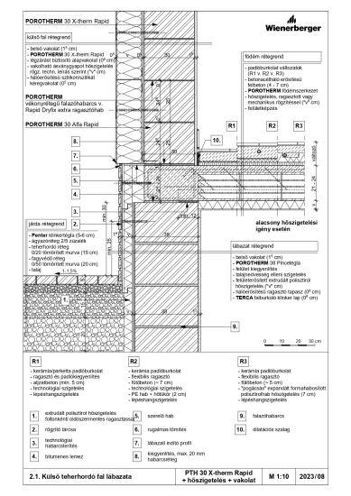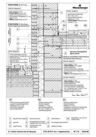 1. Külső teherhordó fal lábazata - PTH 30 N+F neo + hőszigetelés + vakolat