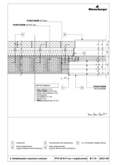 Ablakbeépítés vízszintes metszete - PTH 30 N+F neo + téglaburkolat