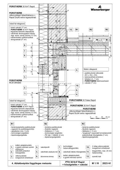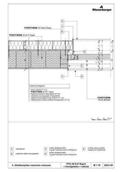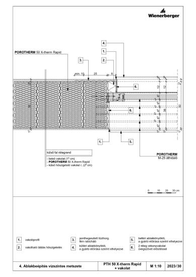 Ablakbeépítés vízszintes metszete - PTH 30 N+F Rapid + téglaburkolat