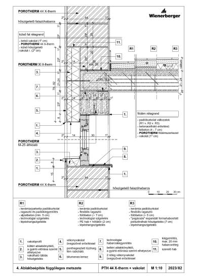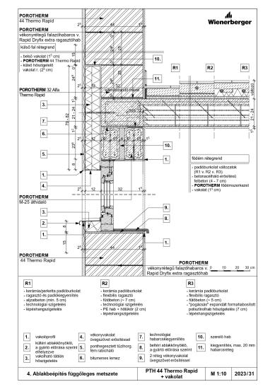 Ablakbeépítés függőleges metszete - PTH 44 X-therm Rapid + vakolat