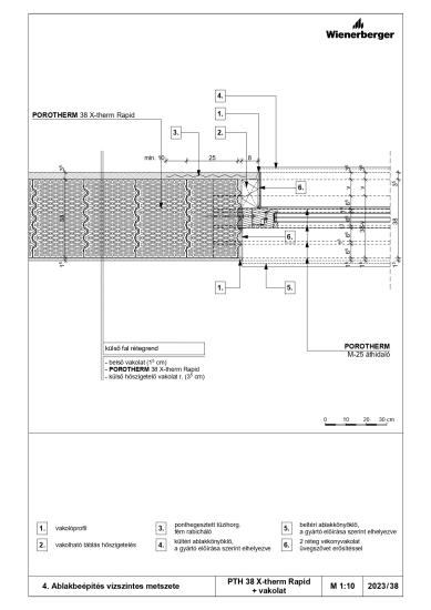 Ablakbeépítés vízszintes metszete - PTH 38 X-therm Rapid + vakolat