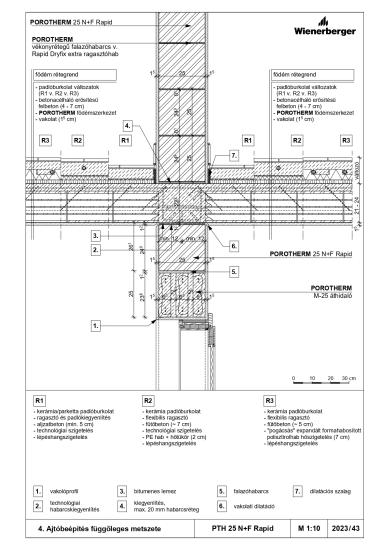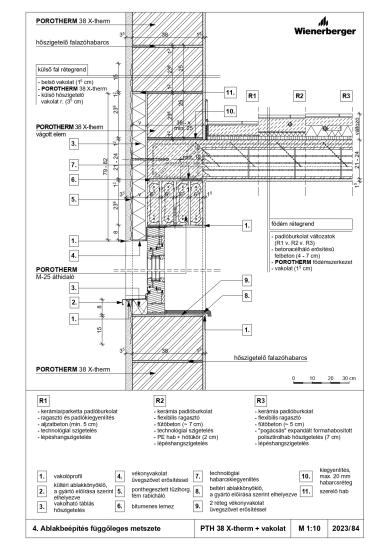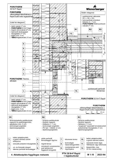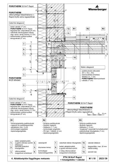 Ablakbeépítés függőleges metszete - PTH 30 N+F Rapid + téglaburkolat
