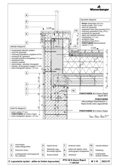 Lapostetős épület - attika és födém kapcsolata - PTH 38 Thermo Rapid + vakolat