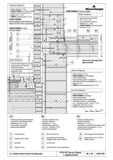 Külső teherhordó fal lábazata - PTH 38 Thermo Rapid + téglaburkolat