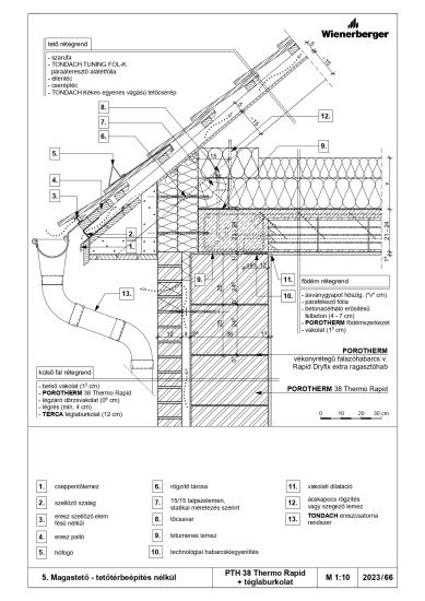 Magastető - tetőtérbeépítés esetén - PTH 38 Thermo Rapid + téglaburkolat
