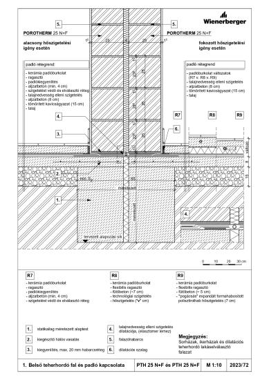 Belső teherhordó fal és közbenső födém kapcsolata - PTH 25 N+F ésPTH 25 N+F