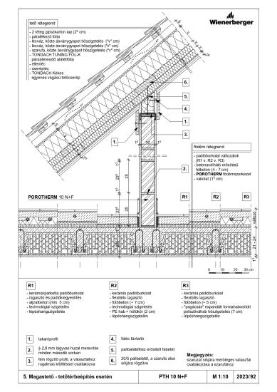 Lapostetős épület - attika és födém kapcsolata - PTH 30 N+F neo + téglaburkolat
