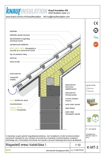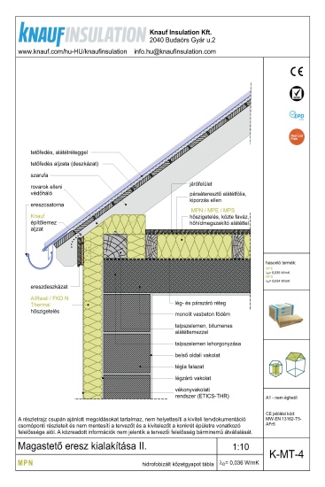 Ereszkialakítás Bramac Therm hőszigeteléssel, fém ereszcsatornával 1. - Szálas hőszigeteléssel