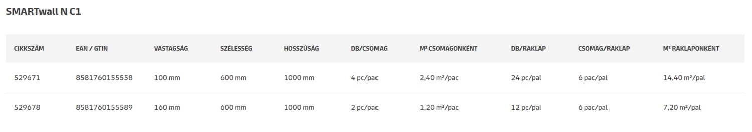 kőzetgyapot termékek. A SMARTwall N C1 egyik oldalán, a SMARTwall N C2