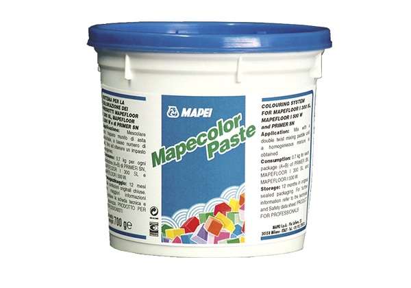 A Mapefloor Paste készre kevert színező paszták választéka, amelyek Primer SNhez, Mapefloor I 300 SL-hez, Mapefloor I 350 SL-hez, Mapefloor I 500 W-hez, Mapefloor I 620 W-hez és Mapecoat I 24- hez adhatók. A Mapefloor Paste 19 különböző színben készül, a legváltozatosabb esztétikai igények kielégítésére.