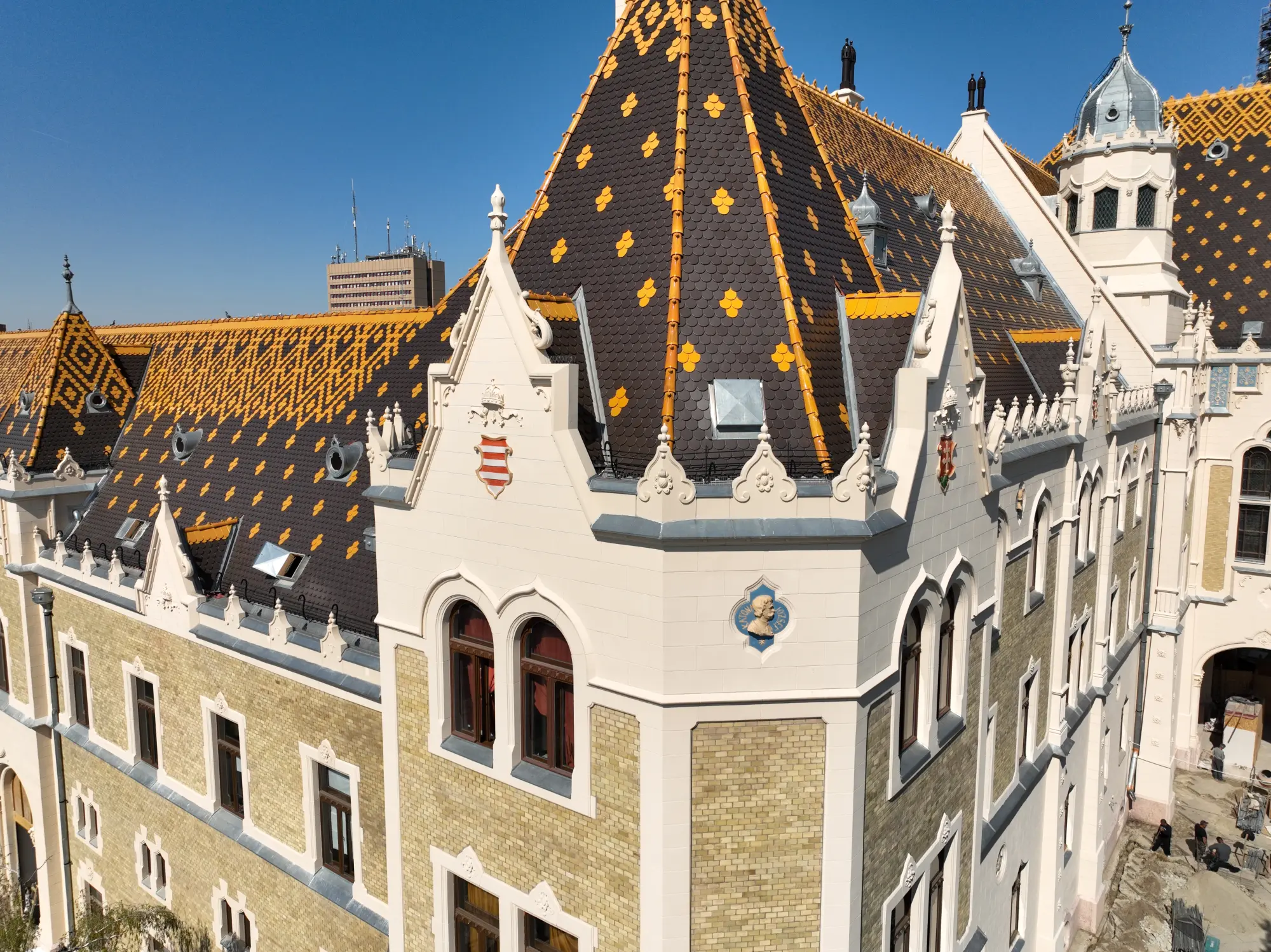 Kecskemét főtere - mely valójában több egymásba fonódó térből áll össze - tele van építészeti kincsekkel. Ráadásul valamennyinek különleges a teteje is. Ám a legszebb közülük mindenképp a jellegzetes tetőmintázatú városháza épülete - főleg, mióta 2023-ban befejezték a teljes rekonstrukcióját. A helyreállítás egyik legnehezebb feladata a megfelelő tetőcserép kiválasztása volt, melyeknek nem csak a színe, de az anyaga is különleges. Az eredeti darabok Zsolnay Vilmos pécsi gyárában készültek, de az ott működő manufaktúra ma már nem tud ilyen méretű feladatokat megoldani. Az elvárt, rendkívül magas minőséget végül a Tondach cserepeivel sikerült elérni - ezek díszítik a gyönyörűen helyreállított épületet.