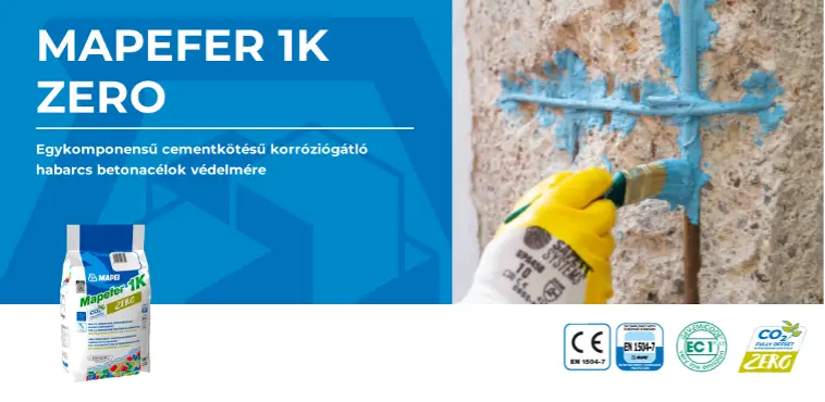 MAPEFER 1K Zero-t két rétegben, ecsettel kell felhordani, összesen kb. 2 mm vastagságban. A termék megakadályozza a betonacélok korrózióját, és visszaállítja a lúgos kémhatást.
