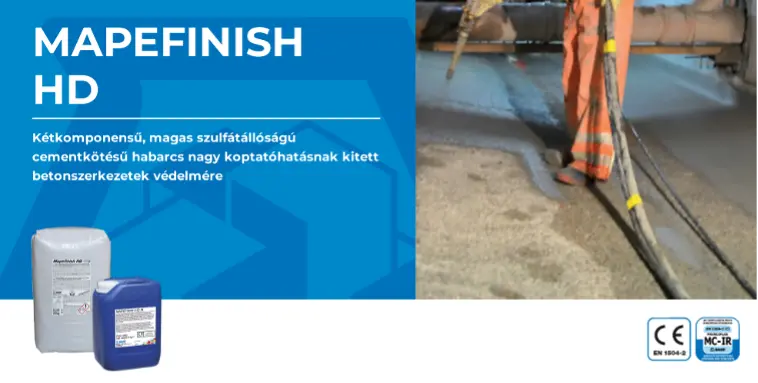 Mapefinish HD kétkomponensű, magas szulfát állóságú cementkötésű habarcs nagy koptatóhatásnak kitett betonszerkezetek felületi egyenetlenségeinek simítása. A