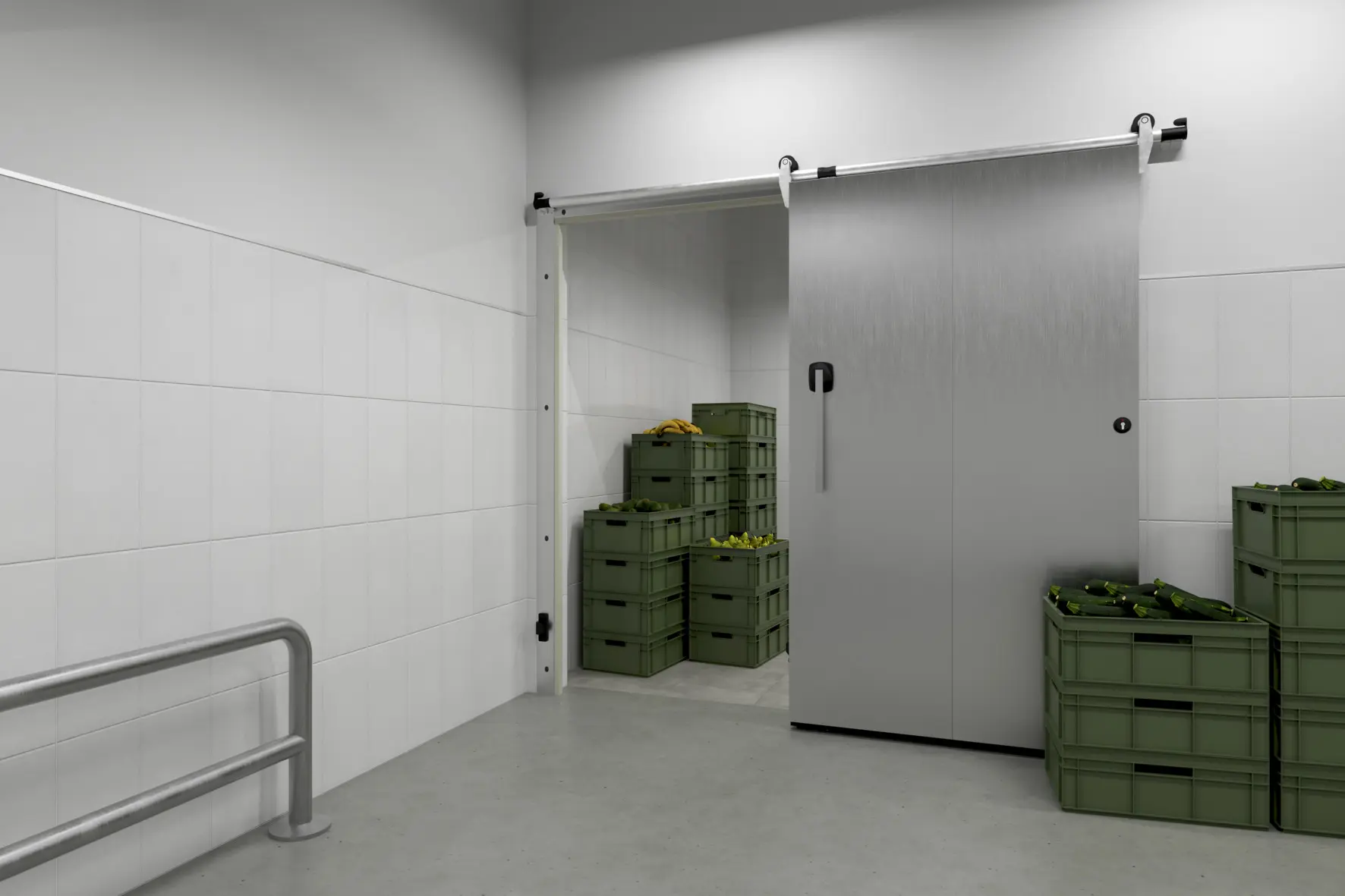 A hűtött és mélyhűtött terek számára tervezett szigetelt ajtók kulcsszerepet játszanak az élelmiszeriparban és a kiskereskedelemben. Ezek az ajtók biztosítják az állandó hőmérséklet fenntartását, így garantálva a tárolt termékek megfelelő minőségét és hosszabb eltarthatóságát. A Hörmann bővíti termékkínálatát, és új nyílószárnyas és tolóajtókat kínál, amelyeket kifejezetten legfeljebb 0 °C-os hűtött terekhez, valamint akár -28 °C-os mélyhűtött helyiségekhez fejlesztettek ki. Ennek köszönhetően vállalatunk teljes körű megoldásokat biztosít az élelmiszeripar számára, egymással optimálisan összehangolt termékekkel.