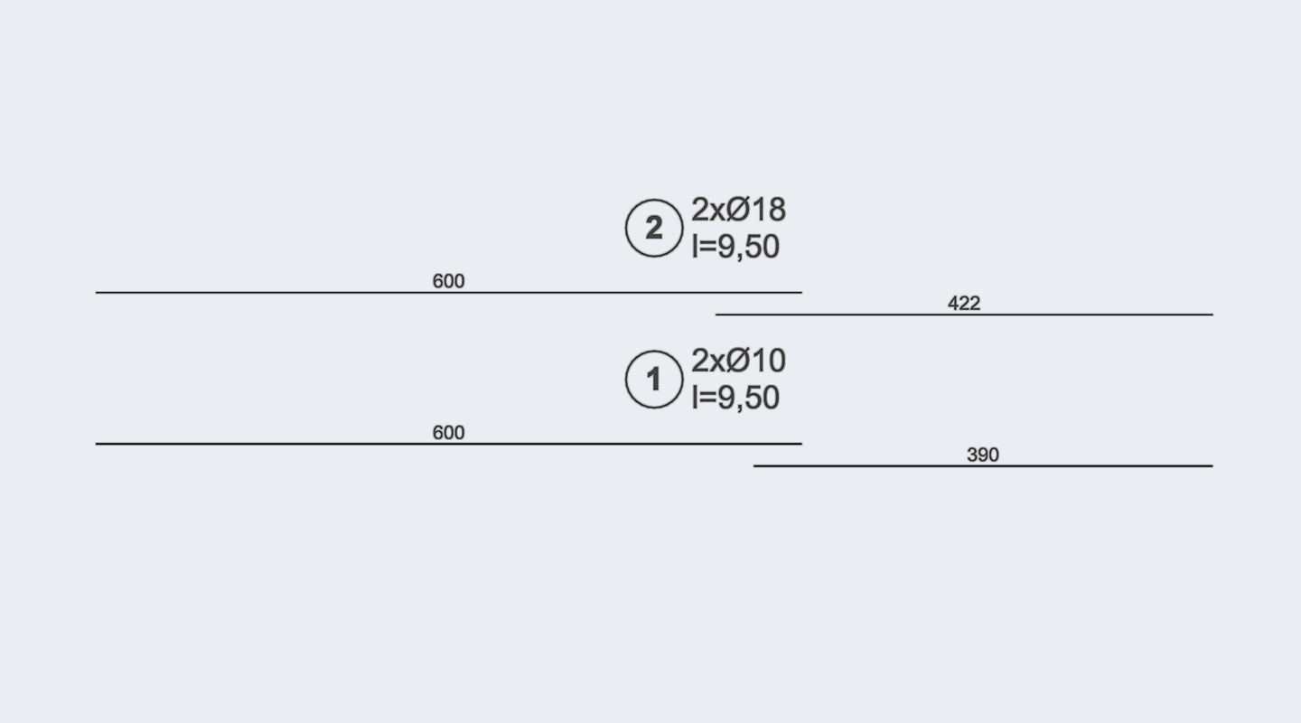 Unfolded drawing of reinforcement bars for structural reinforcement components. Component drawings can be placed in separate views, not only on the floor plan, placed component and cross-sectional drawings automatically update when the reinforcement of the element is modified.