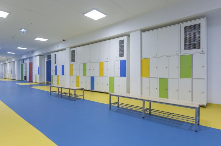 ülőbútor, öltözői pad is kiegészítheti. Az öltözőkbe fogasok, tükrök,