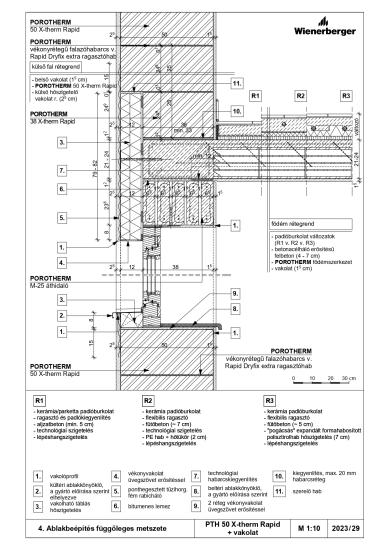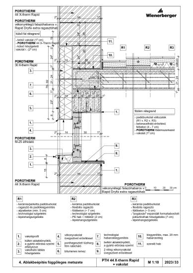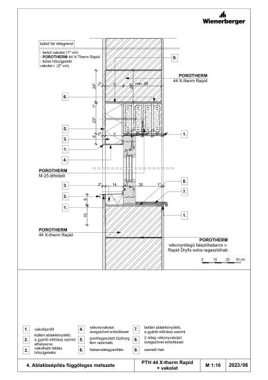 Ablakbeépítés függőleges metszete - PTH 44 X-therm Rapid + vakolat