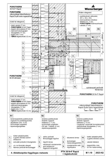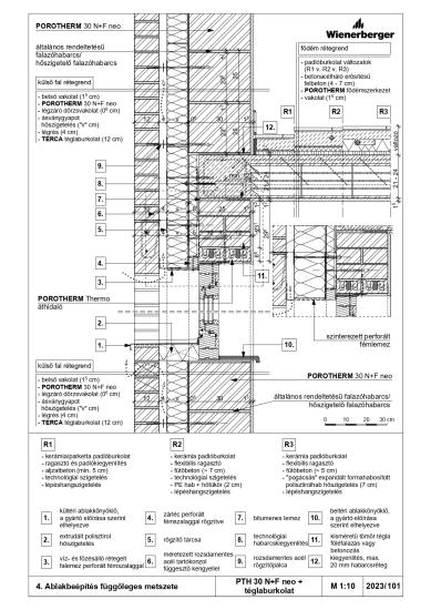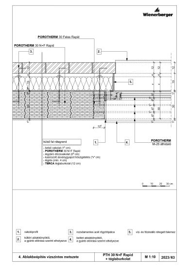 Ablakbeépítés függőleges metszete - PTH 30 N+F Rapid + téglaburkolat