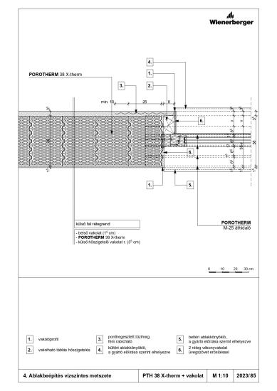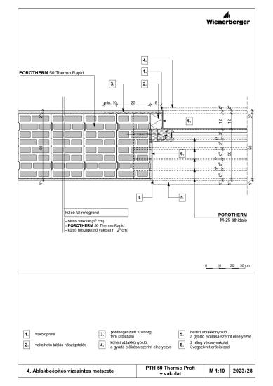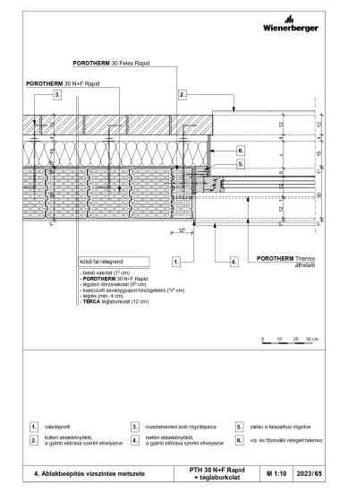 Ablakbeépítés vízszintes metszete - PTH 30 N+F Rapid + téglaburkolat
