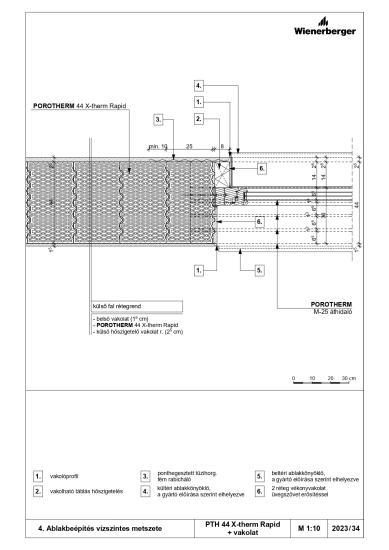 Ablakbeépítés vízszintes metszete - PTH 44 X-therm Rapid + vakolat