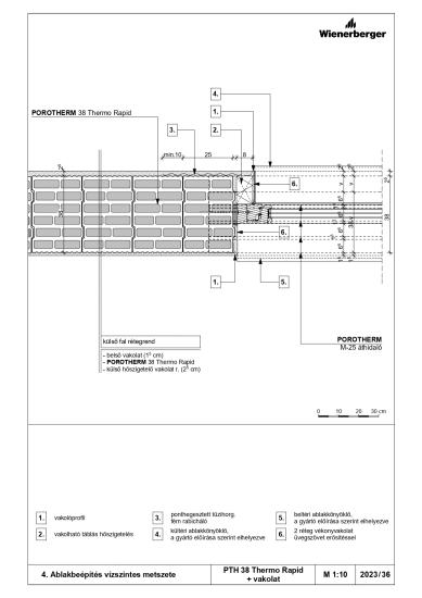 Ablakbeépítés vízszintes metszete - PTH 38 X-therm Rapid + vakolat