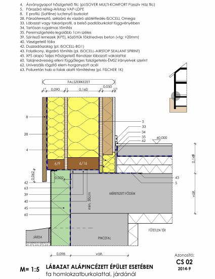 02.33. Lábazati megoldás alápincézett épület esetén kent vízszigeteléssel E-gerendás födémmel