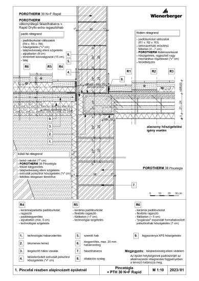 1. Pincefal részben alápincézett épületnél - Pincetégla + PTH 30 N+F Rapid