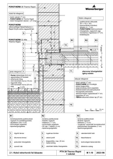 Külső teherhordó fal lábazata - PTH 38 Thermo Rapid + téglaburkolat