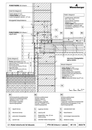 Külső teherhordó fal lábazata - PTH 38 X-therm Rapid + vakolat