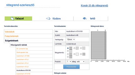 A kívánt réteges szerkezetet itt lehet összeépíteni és módosítani. A szerkesztés folyamán figyelemmel kísérhetjük a szerkezet hőtechnikai értékeinek változását is. Az összeállított rétegrendről egy XML fájl menthető, amit meg lehet nyitni a CAD tervezői szoftverekben a rétegrend-szerkesztő kiegészítő alkalmazás segítségével. Ezután automatikusan létrejön az általunk definiált épületszerkezet, megjeleníthető, listázható módon.