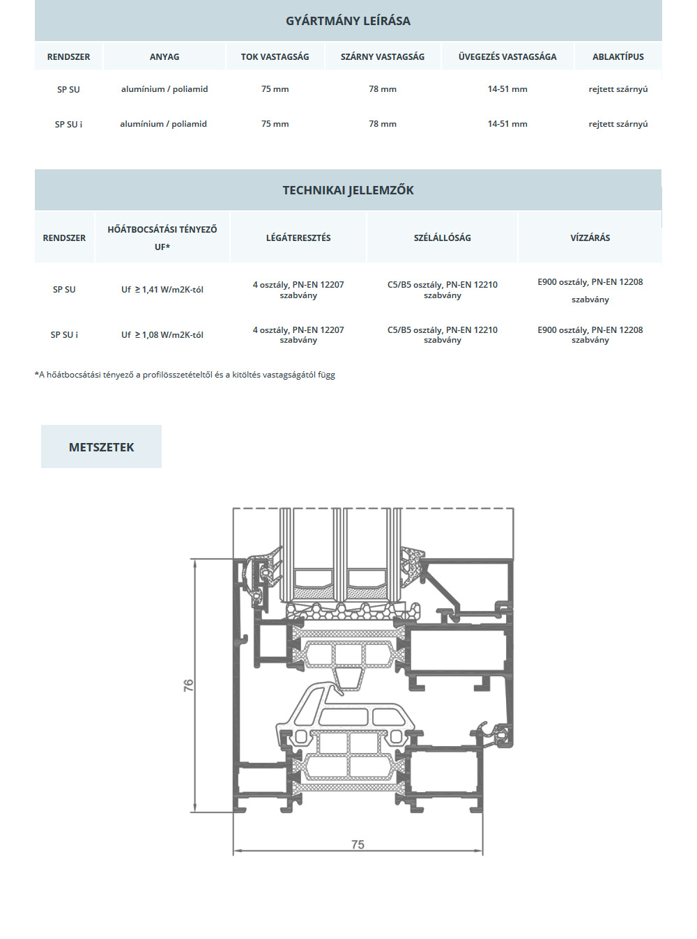 • SP SU i mely betéttel van kiegészítve ott, ahol az üveg a profillal érintkezik.