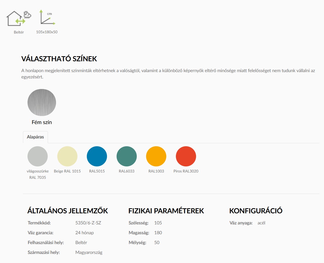 A tartós, könnyen tisztítható fém szekrények Z-ajtós változata ideális megoldás, ha kevés a hely. Formai kialakításának praktikussága ideálissá teszi a hosszabb ruhaneműk tárolására. A „Z” forma színes megoldásaival teheti egyedivé az öltözőt. A FittMet fém öltözőszekrény teljes felületén elektrosztatikus porszórással festett hajlított acéllemez korpusszal és ajtóval készül. Szoklis kivitelben. Alapfelszereltség: ruhaakasztó rúd ruhakampóval, kétkulcsos biztonsági zár, ajtó, tető-és fenéklemezen kopoltyúszerű szellőztetés, névcímke tartó.