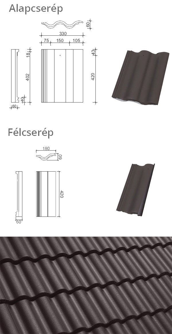 | Átfedés egymás felett | min. 80 mm (hajlásszögtől függően) |