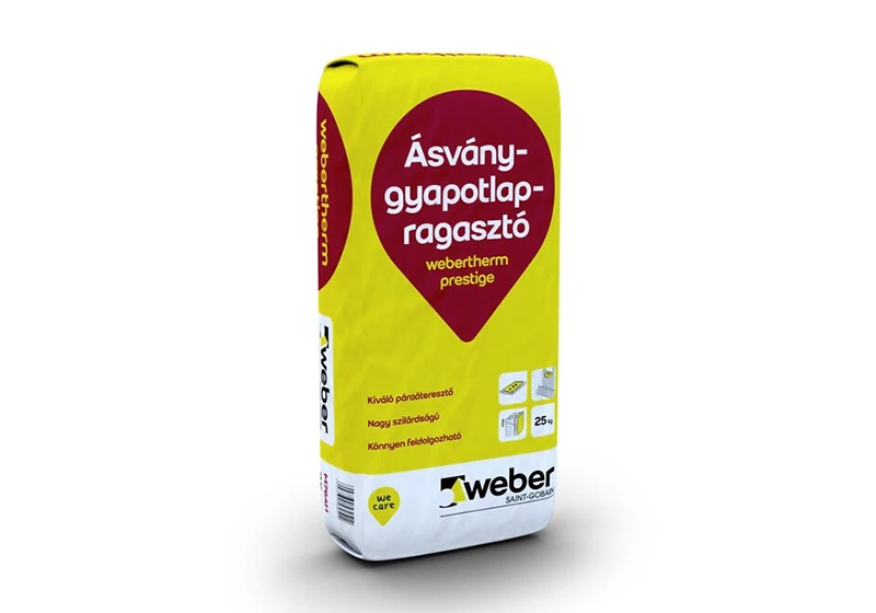 Felhasználásra kész, por alakú, cement-műgyanta kötésű, középágyazatú (3-6 mm) ragasztóhabarcs, webertherm homlokzati hőszigetelő rendszerek ásványgyapotlapjainak ragasztására, üvegszövet beágyazására.