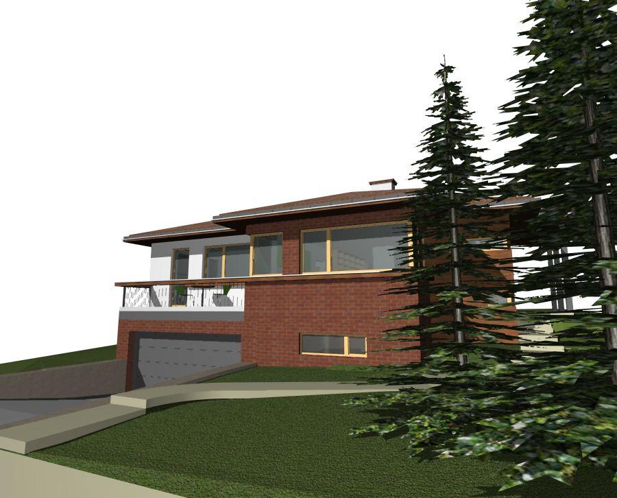A kétszintes családiház alsó szintje részben a terepszint alá kerül. A lejtős terepet kihasználva a felső szint lakóhelyiségeit kertkapcsolattal alakítottuk ki. A+ energiaszintű, megújuló energiafelhasználással, hővisszanyerős szellőztetéssel tervezett épület.