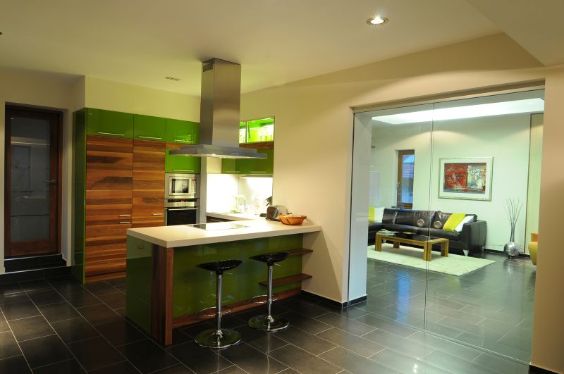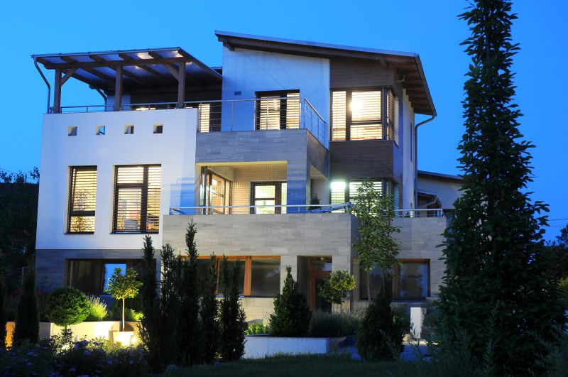 Enyhén lejtős terepen elhelyezett kényelmes családi ház luxus kivitelben.
