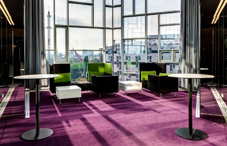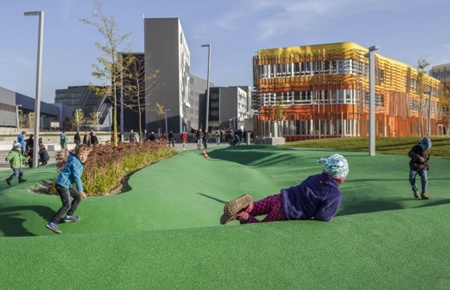 A Práter és az Expó között fekvő összesen 100 000 m2 -es tágas területből 55.000 m2 nyilvános, ahol éttermek, kávézók, boltok, szolgálják a diákok mellett a város lakóit is.