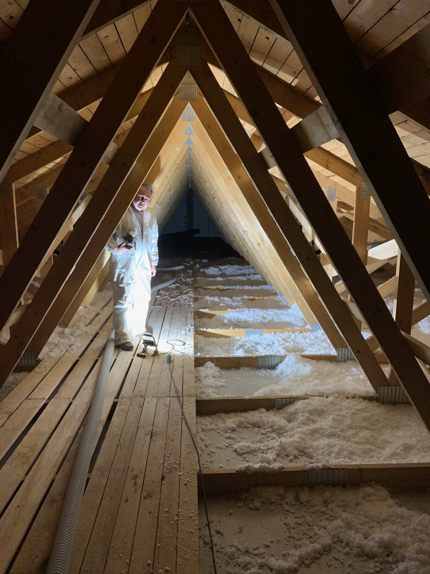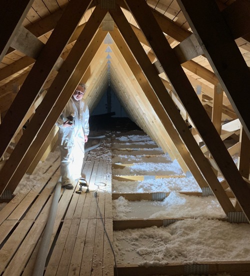 Ezen esetekben a hőszigetelés készítésére szinte kizárólag a fújható szigetelés a megoldás, tekintettel a gipszkarton borítás kis terhelhetőségére, és a rálépés (sérülés) veszélyére.