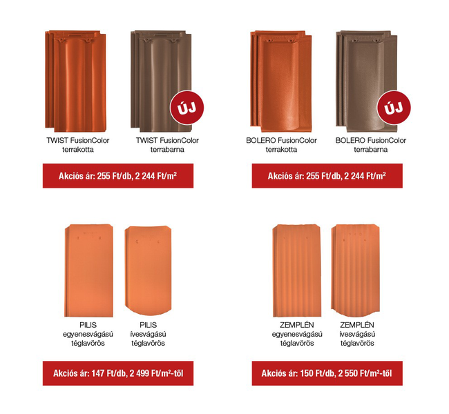 A népszerű TONDACH TWIST és BOLERO tetőcserepek FusionColor terrakotta és terrabarna színekben a listaárhoz képest 38-41%-os kedvezménnyel kaphatóak!
