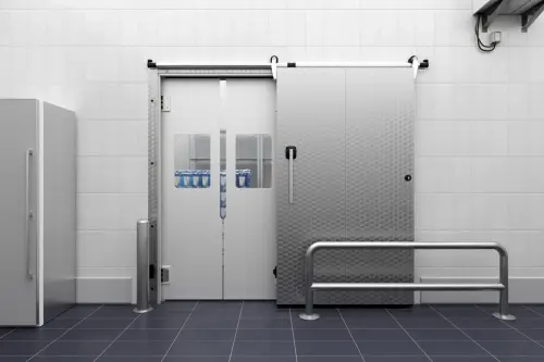 A hűtött és mélyhűtött terek számára tervezett szigetelt ajtók kulcsszerepet játszanak az élelmiszeriparban és a kiskereskedelemben. Ezek az ajtók biztosítják az állandó hőmérséklet fenntartását, így garantálva a tárolt termékek megfelelő minőségét és hosszabb eltarthatóságát. A Hörmann bővíti termékkínálatát, és új nyílószárnyas és tolóajtókat kínál, amelyeket kifejezetten legfeljebb 0 °C-os hűtött terekhez, valamint akár -28 °C-os mélyhűtött helyiségekhez fejlesztettek ki. Ennek köszönhetően vállalatunk teljes körű megoldásokat biztosít az élelmiszeripar számára, egymással optimálisan összehangolt termékekkel.